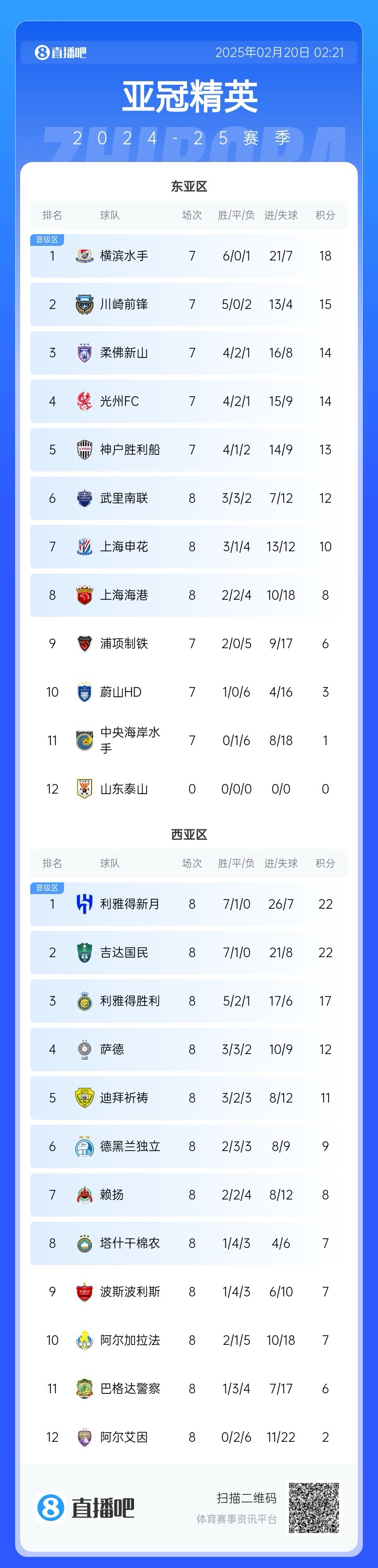 02月20日讯 亚足联官方今天凌晨确认了本届亚冠精英联赛东亚区的8强,山东泰山最后一轮退赛导致排名出现了意料之外的变化,影响波及东亚多队。
