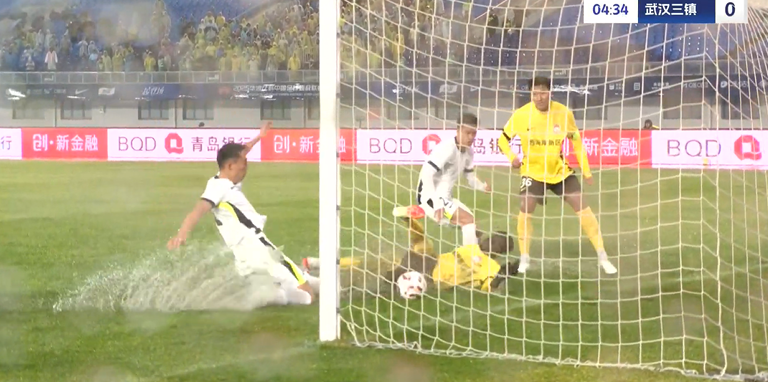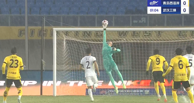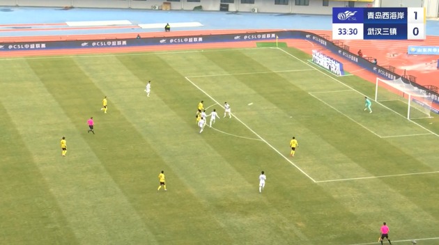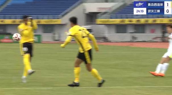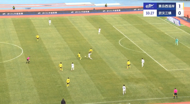 上半场补时3分钟,青岛西海岸1-0武汉三镇。