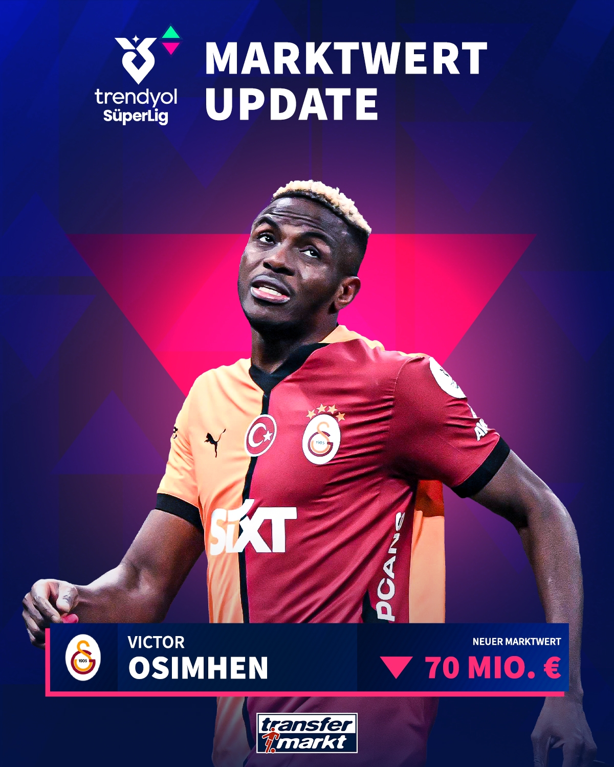 自夏窗从那不勒斯租借加盟加拉塔萨雷以来,奥斯梅恩的身价已经从1亿欧,不断下跌来到7000万欧。